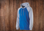 - Contrast color raglan sleeves and hood